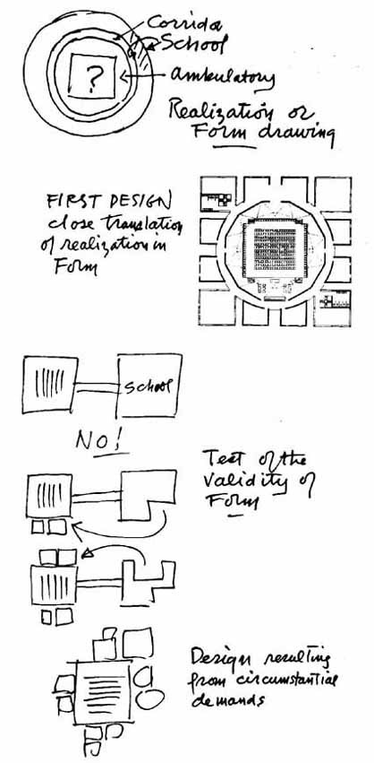 der Rohe. Nasce in Estonia nel 1901 e a quattro anni emigra con la famiglia dalla Russia per trasferirsi in Pennsylvania dove vive poveramente nei sobborghi di Philadelphia. Il talento per il disegno gli permette di ottenere una serie di borse di studio che lo mantengono sino alla laurea in architettura ottenuta nel 1924 all'Università della sua città. Il suo maestro è Paul Cret da cui assimila una solida preparazione Beaux Arts approfondita nel suo primo viaggio in Europa nel 1928. Dopo una pratica negli studi di Philadelphia, apre un proprio ufficio nel 1937 cui si associeranno nel 1941 George Howe e Oscar Stonorov. Le opere non sono numerose e si richiamano sia negli intenti sociali che nel linguaggio al tardo razionalismo. Dopo la guerra diventa professore di architettura a Yale e ottiene nel biennio 1950-1951 una borsa Fulbright all'Accademia americana di Roma che gli permette di viaggiare anche nel bacino del Mediterraneo. Al ritorno a Philadelphia il suo stile muta radicalmente e la realizzazione alla fine degli anni Cinquanta dei laboratori Richards all'Università di Pennsylvania - di cui dal 1956 è diventato professore - lo proietta all'attenzione critica internazionale. I capolavori si succedono l'uno all'altro e l'architetto ottiene anche incarichi fuori degli Stati Uniti. Il dibattito architettonico del secondo dopoguerra viene profondamente vivificato dal lavoro di Kahn e la sua influenza è decisiva in architetti come Robert Venturi, Charles Moore, Louis Sauer, Mario Botta, Romaldo Giurgola e tanti altri. Il dettato razionalista che lega meccanicamente forma e funzione, lascia il posto alla riflessione sulle ragioni umane, simboliche e istituzionali del costruire. A quello che il maestro chiama il voler essere di ogni progetto. La separazione tra il momento razionale e quello espressivo della progettazione viene definitivamente superata. La forma, nelle costruzioni di Kahn, ridiventa funzione e la funzione, forma. La morte lo coglie il 17 marzo del 1974 al ritorno da Ahmedabad per una supervisione del cantiere dell'Istituto Indiano di Amministrazione che insieme al parlamento di Dacca lascia tracce visibili del suo pensiero anche nella lontana India. Il lavoro del Kahn che opera negli anni Trenta e nel periodo bellico ha una chiara impronta funzionalista e si sviluppa in progetti di urbanistica e per la razionalizzazione degli insediamenti da edificare in supporto allo sforzo bellico degli Stati Uniti. Oltre ai temi di rilevanza sociale, condotti in associazione con Howe e Storonov, l'architetto progetta case unifamilari che riecheggiano i motivi formali e gli impianti di Walter Gropius e Marcel Breuer emigrati dalla Germania. In queste case non vi è alcun elemento che lasci presagire il successivo sviluppo di Kahn, eccetto un forte senso di radicamento al terreno della costruzione. Il passaggio da questa prima fase funzionalista al Kahn maturo è segnata dai disegni che l'architetto esegue nel 1950-51 nei suo viaggio nel bacino del Mediterraneo. È la premessa che apre la strada allo sviluppo della sua poetica. I capolavori cominciano a nascere dalla metà degli anni Cinquanta: la nuova Galleria d'arte di Yale, i laboratori Richards a Philadelphia, l'Unitarian Church a Rochester, l'istituto Salk a La Jolla, la biblioteca Philips a Exeter, il museo Kimbell a Fort Worth. ![]() Chi è dunque il Kahn che emerge a metà degli anni Cinquanta? E' certo un maestro inquieto, lontano dalle certezze del primo Le Corbusier, dalla perentorietà didattica di Gropius, dal rigore astratto-tecnologico di Mies, dalla applicazione di una nuova grammatica di Wright. Tre materiali assumono il valore di autentiche pietre miliari del percorso artistico di Kahn e permettono di cogliere con chiarezza il passaggio dall'architetto di scuola bauhausiana, al grande innovatore successivo. Il primo è un disegno a pastelli delle piramidi di Giza. Kahn è un professore di architettura di cinquanta anni che gode, come si diceva, di un anno di studio all'Accademia americana di Roma. Studia l'antico e viaggia in Egitto e in Grecia. Il disegno a pastelli delle piramidi, è lontanissimo dal tratto calligrafico che gli permise da giovane di finanziare la sua educazione a Philadelphia. È il disegno deciso e forte di un architetto moderno che guarda con occhi nuovi alla storia. Che tenta di reinserirla nel flusso vivo del progetto. Ma questo, come altri disegni del biennio 1950-1951, dimostrano che la storia per Kahn non è quella degli ordini rinascimentali, degli stili, del pastiche eclettico. E' una storia concentrata nella sua essenza, riportata al dato ancestrale, magico e simbolico. A quarant'anni dalle Damigelle d'Avignone di Picasso, dai ritratti di Braque, dalle sculture di Brancusi, Kahn fa suo il momento fondativo delle avanguardie artistiche del Novecento, trascurato nell'evolversi del razionalismo architettonico: è il ritorno al primitivo per ritrovare le ragioni della ricerca del nuovo. Kahn è interessato all'essenza profonda del costruire, e alle sculture negre dei cubisti, fa corrispondere la sua attrazione per l'architettura delle piramidi, dei Dolmen, delle scarnificate colonne dei templi greci, degli acquedotti, degli impianti della decadenza romana, e più tardi dei tipi puri dell'architettura bizantina. Sono influenze profonde che germinano in tante direzioni, ma che in questi primi disegni assumono il valore dell'intuizione pura: tanto da far pensare a una illuminazione, a un San Paolo sulla via di Damasco colpito da una nuova indiscutibile verità sulla essenza sacrale del costruire. Un secondo documento fa cogliere come l'intellettuale e il professore senta il bisogno di razionalizzare l'intuizione per avere gli strumenti da usare nel suo progettare. Si tratta di due pagine manoscritte in cui l'architetto parla della pianta palladiana e, in tutta modestia, descrive quella che è per lui una autentica scoperta: struttura e spazio sono un tutto unico. La pianta libera della griglia